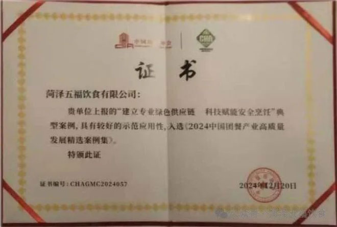 2024年12月,被中國飯店協(xié)會(huì)授予“2024年度中國團(tuán)餐領(lǐng)跑...